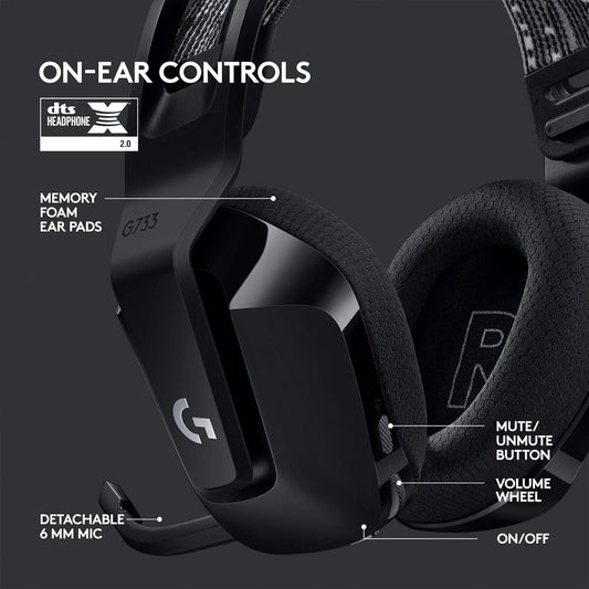 Logitech G733 Lightspeed Wireless Gaming Headset with Suspension Headband, Lightsync RGB-BLACK (981-000864)