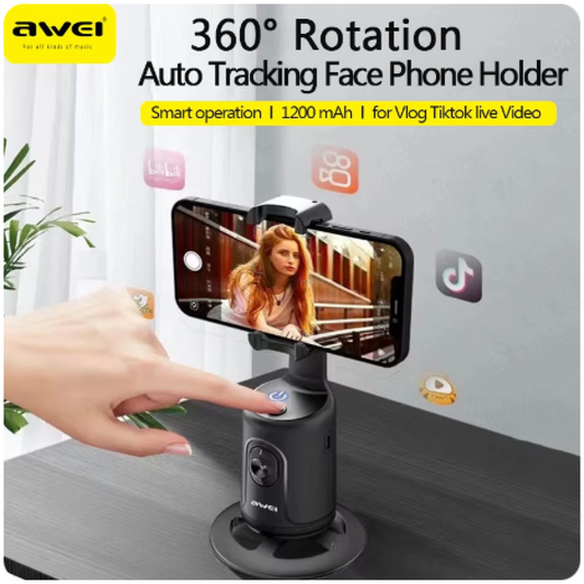 Awei 360° Auto Tracking Face Phone Holder Smart Selfie Stick Shooting Gimbal Stabilizer For Vlog Tiktok Live Video Photography
