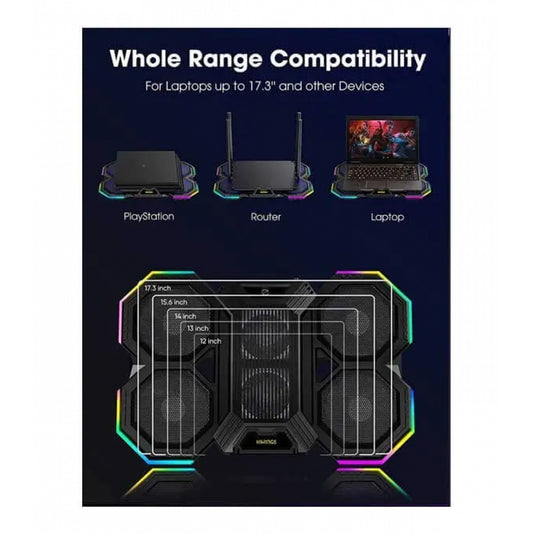 F12 Dazzle Mute Super Cyclone RGB Laptop Cooling Pad, Gaming Laptop Cooling Stand With Dual USB, Six Height-Adjustable Fans, Extra iPad/Phone Stand For 11 to 16" Laptops