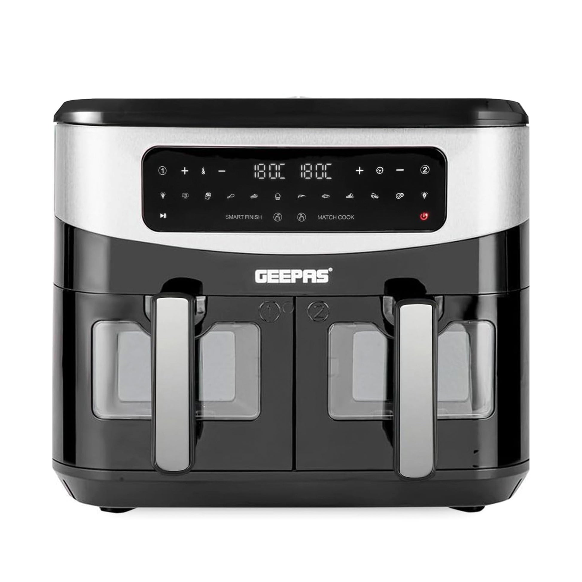 GEEPAS Dual Zone Digital Air Fryer with Visual Window | 9L XL Capacity 2 Drawers 10-In-1 Cooking Presets | Touch Screen Smart Finish Timer Function Dishwasher-Safe Healthy Oil Free & Low Fat Cooking