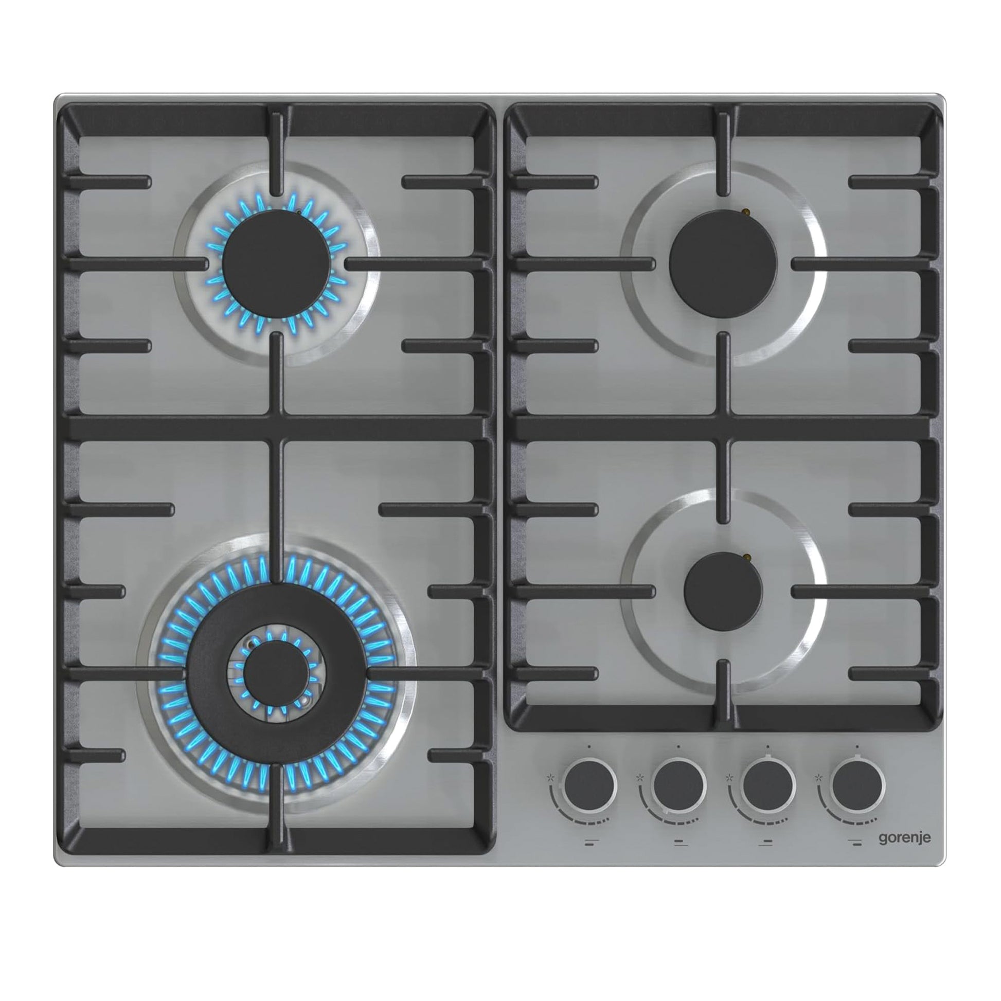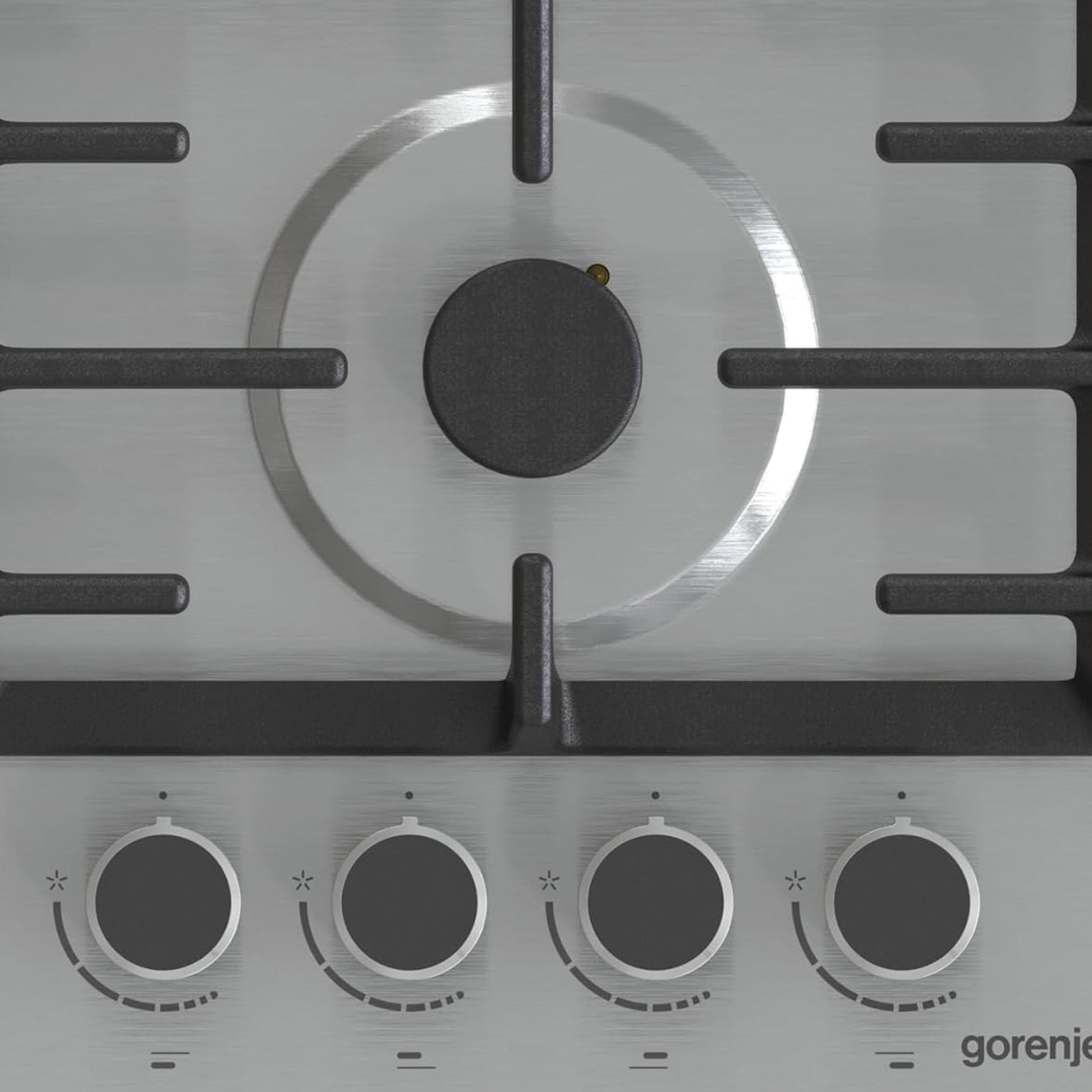 Gorenje GW642ABX, 60 cm Stainless Steel Gas Hob, One hand Ignition, Cost Iron Pan Support, Made in Slovenia, 1 Year Warranty