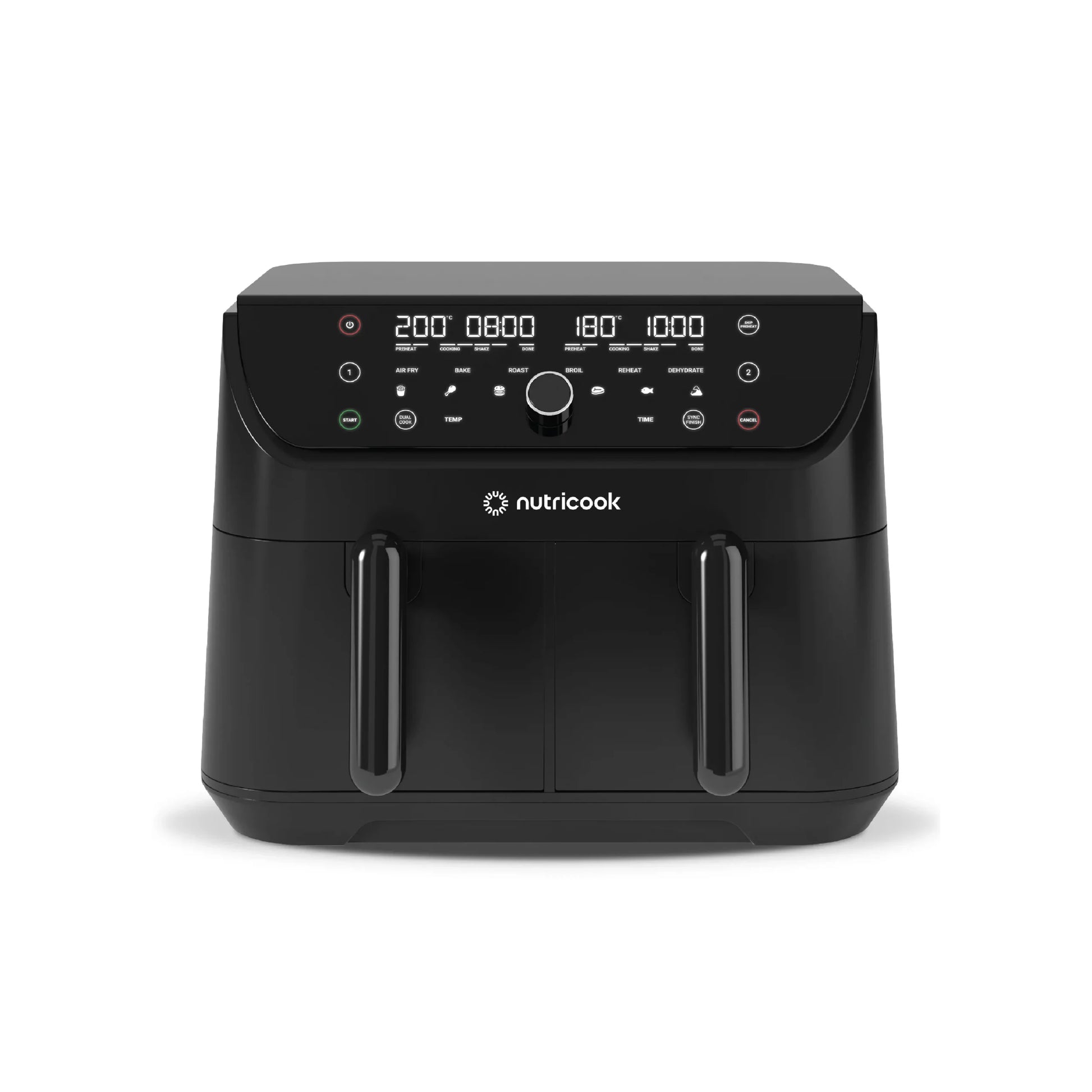 Nutricook Air Fryer Duo 2 by Caliber Brands, 8.5L Independently Controlled Dual Baskets, Air Fry, Bake, Roast, Broil, Reheat & Dehydrate, 6 Presets, AFD185, Black, 2400 Watts, 2 Year Warranty