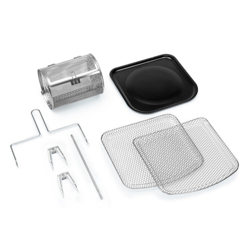- 6 accessories included: 2 bake trays, oil tray, fetch rack, 2.9L rotating round