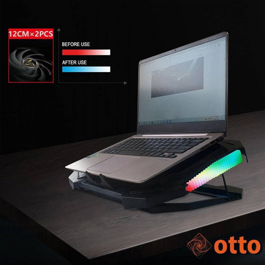 YL-017 Gaming Laptop Cooling Pad Stand, 2x Large LED Fans, RGB Side Lights, 2 x USB Ports, For 12 to17" Laptops