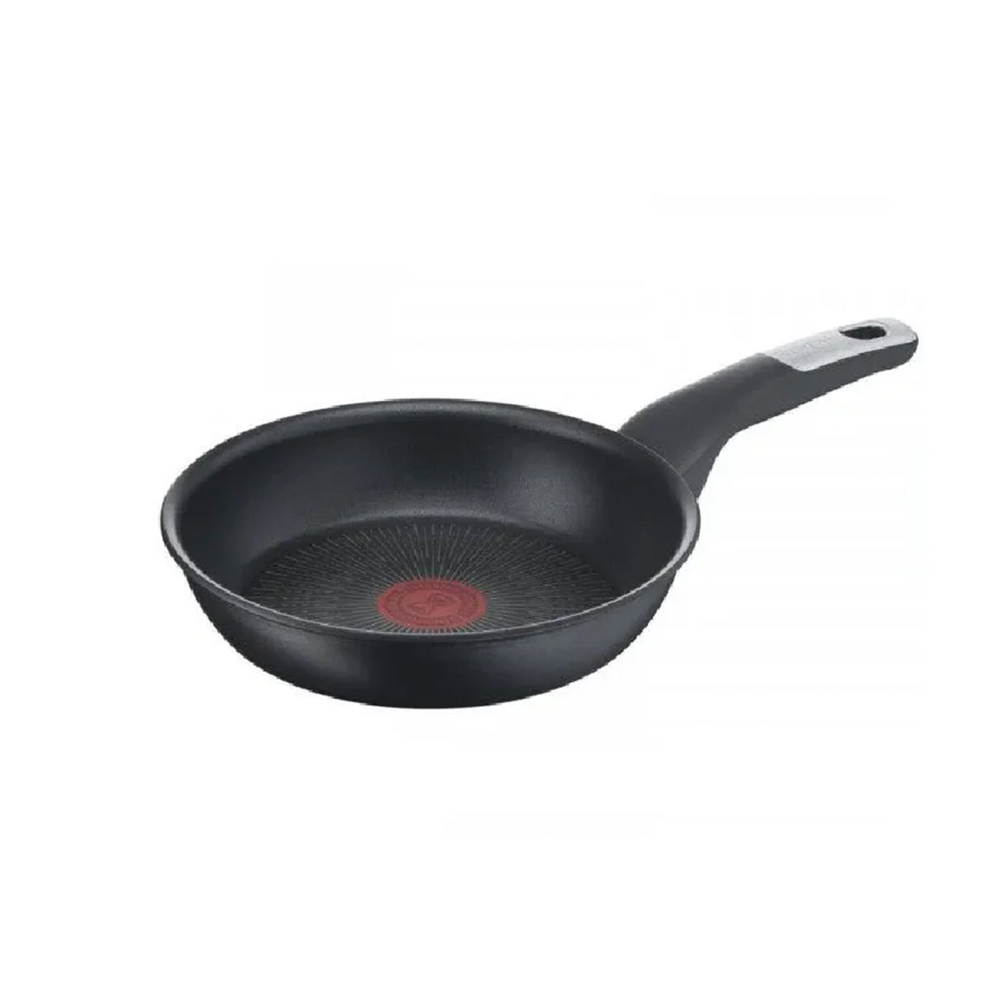 - Non-stick frying pan enhanced with thermal heat signal technology, changes color at the optimal temperature to start cooking for fast cooking